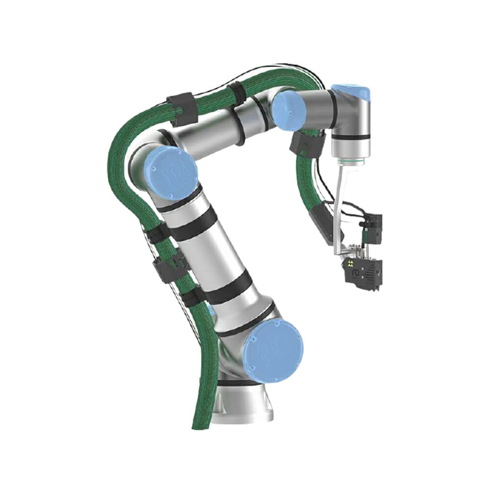 Robatech’s specially developed and certified UR+ Integration Kit perfectly connects the collaborating Universal Robots with Robatech adhesive application systems. The Integration Kit includes a holder for the application head and attachments for the heating hose on the robot arm. With the GlueBot software, the adhesive application process can be easily programmed. Furthermore, the system status of the melter is clearly displayed on the touch pad of the robot. Settings for heated hose, application head, and melter can also be applied easily using the touch pad.