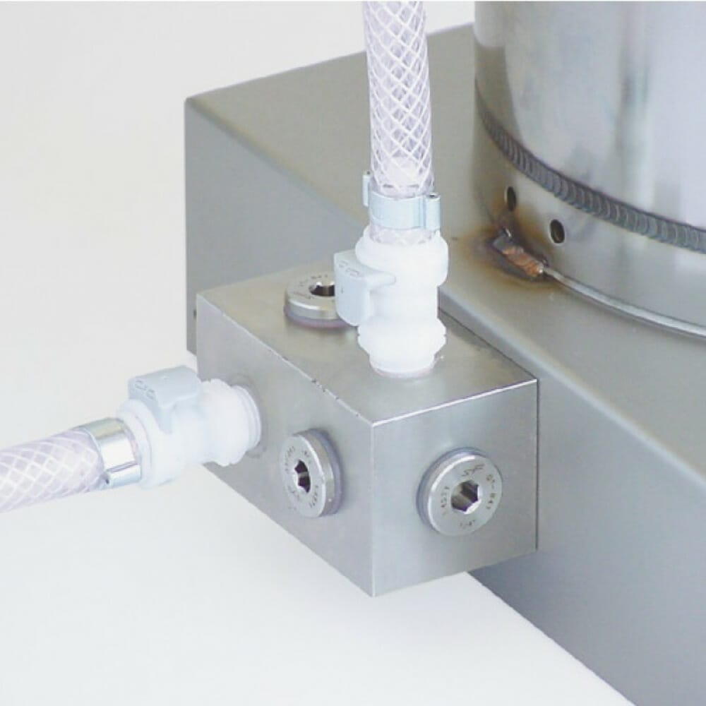 This cost-effective delivery method can meet the production needs of a number of applications. Pressure tanks are often used in the converting and graphics industry, e.g. box folding machines.