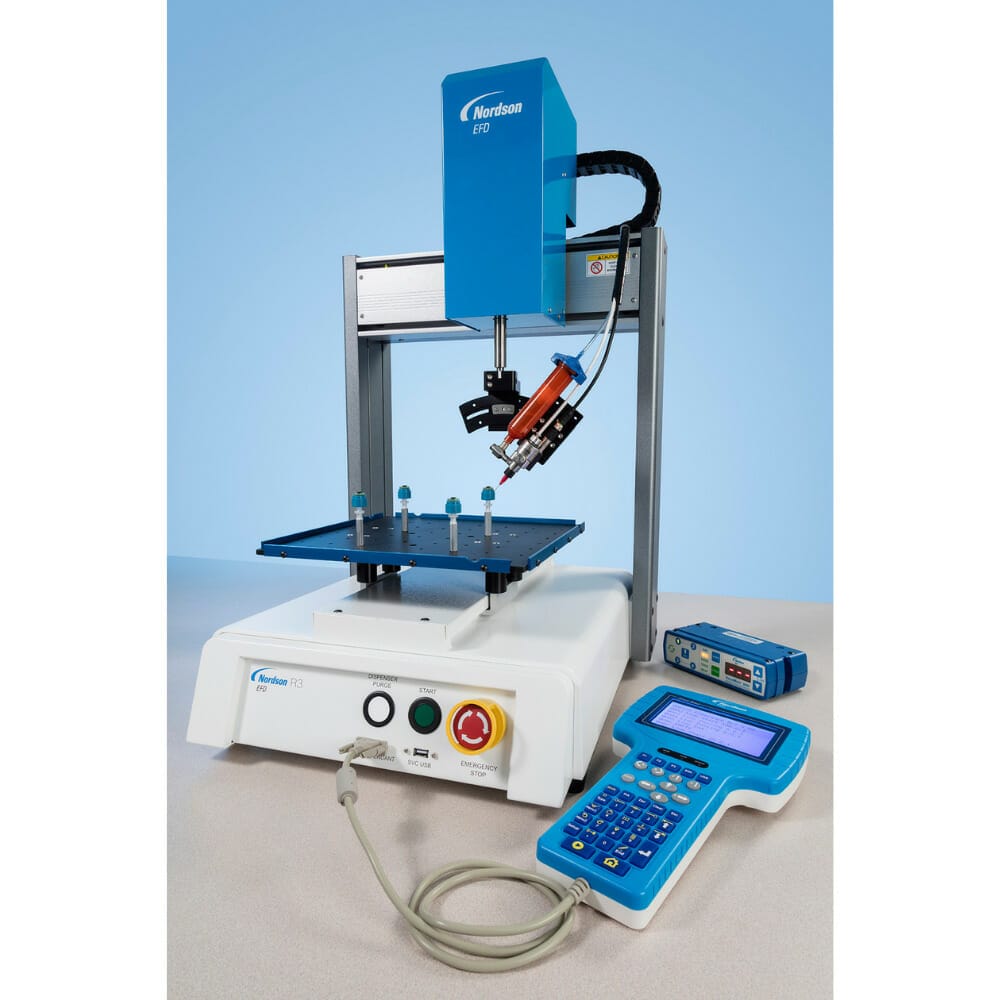 The R Series automated fluid dispensing system features specialized TeachMotion™ Teach Pendant software for market-leading repeatability and accuracy in fluid placement and positioning.