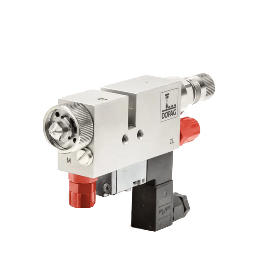 The advantage of membrane dispensing valves is their ability to process material with challenging properties in continuous shot applications. The valves are designed for care-free dispensing of low to high viscosity, filled or unfilled, abrasive or chemically reactive 1K fluids. Part of their structure is an integrated membrane that separates the pneumatic and the metering parts of the valve. As a result, only the valve head and the membrane come in contact with the material, while the material passageway can be easily flushed if necessary. The size of the orifice is regulated by stroke adjustment. Material dripping after shot completion is effectively prevented with the snuff-back mechanism. This valve is exceptionally easy on maintenance.