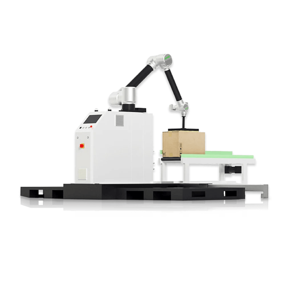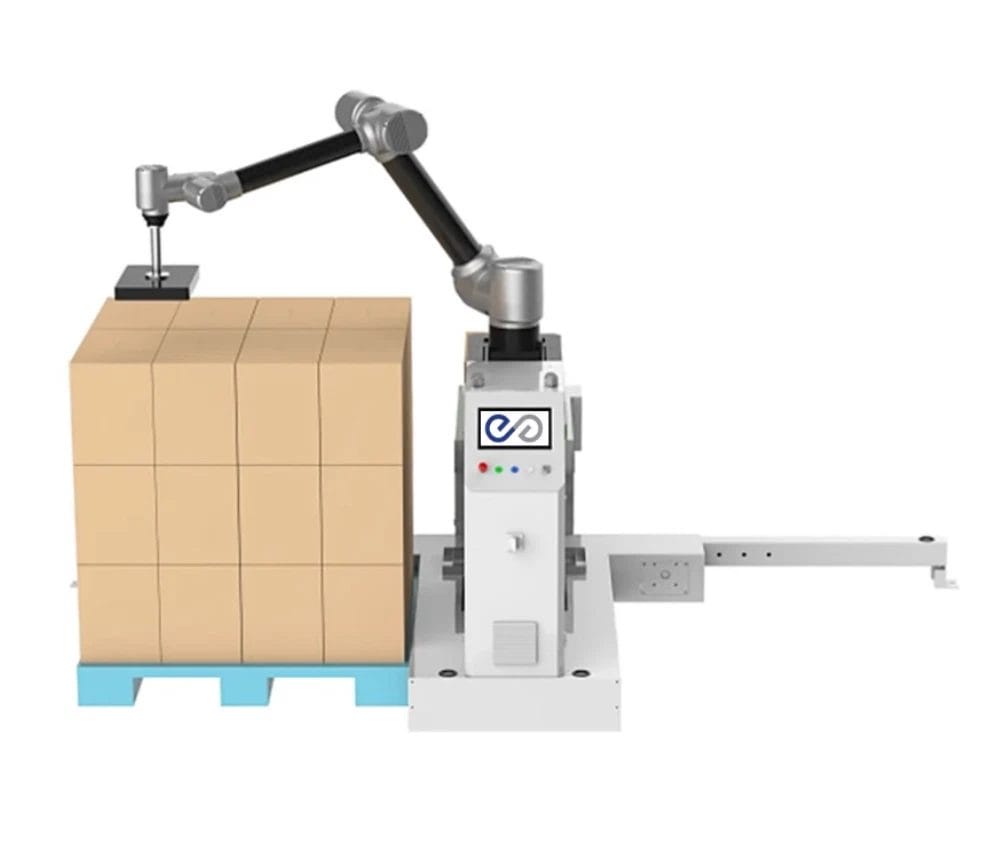 - The collaborative arm moves along the preset path directly above the product, and the end grabber picks up the product and places it on the pallet.